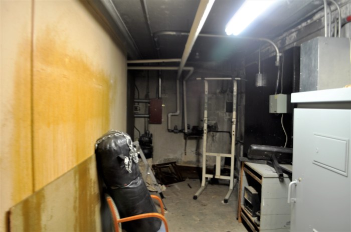 In the basement, no interior signs or supplies (if there were any) remained.